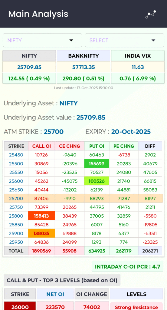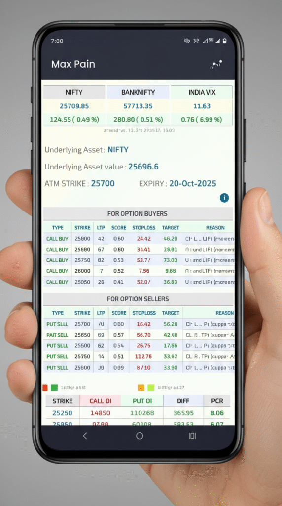The app helps users understand market sentiment, study strike-wise Open Interest behavior, and interpret broader participant positioning — all in a clear and easy-to-use interface.